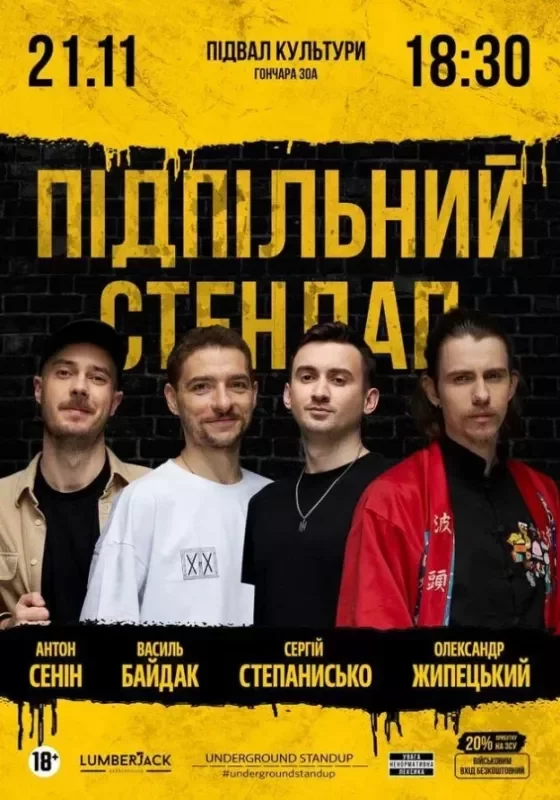 *вхід для бійців ЗСУ та ТРО - безкоштовний за попереднім записом в інстаграм @undergroundstandupkyiv;