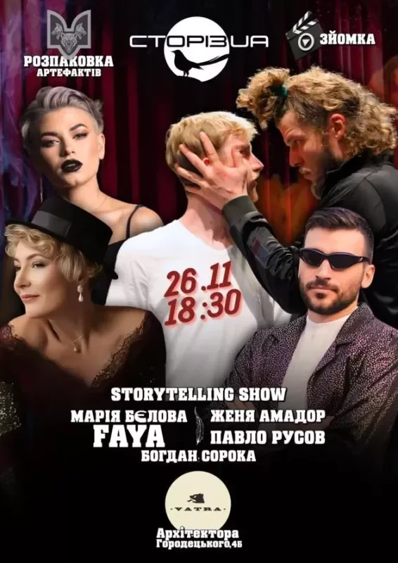 Запрошуємо на найвідвертіший стенд-ап який ви коли небудь бачили! Серйозні теми без жартів, скелети в шафах сторітеллерів, які захоплять ваші враження ще на довгий час!