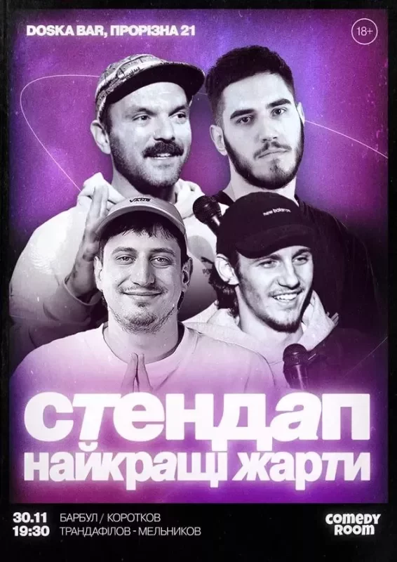 Цієї суботи в Comedy Room на вас чекають лише найкращі жарти та крута імпровізація від досвідчених коміків. Цього вечора на сцені: