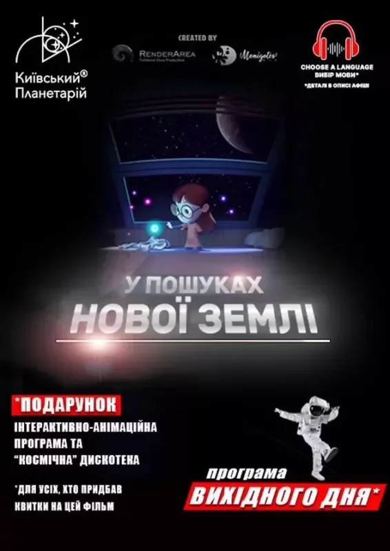 Доступні мови перегляду шукайте в описі фільму та звертайтеся до представників Київського Планетарію щодо свого вибору мови.