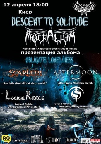 В Киеве в клубе "Барвы" 12 апреля состоится концерт-презентация второго полноформатного альбома харьковской gothic/death doom группы Mortalium! Приходите послушать музыку и повеселится, будет незабываемо!