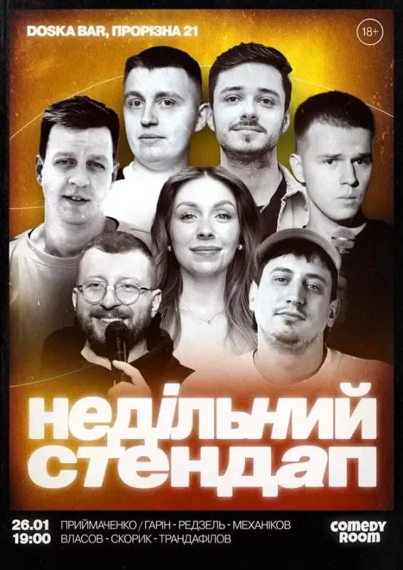 Твій вечір буде наповнений жартами, сміхом та новими знайомствами, якщо завітаєш цього вечора у Comedy Room! Ми обіцяємо тобі дешевий бар, смачну їжу та класний стендап, чекаємо на тебе!