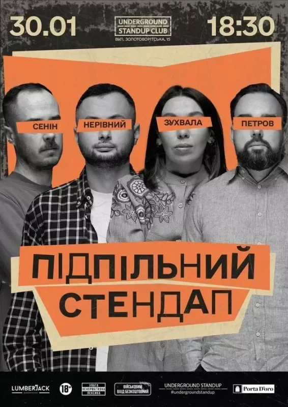 *вхід для бійців ЗСУ та ТРО - безплатний (за попереднім записом в інстаграм @undergroundstandupkyiv)