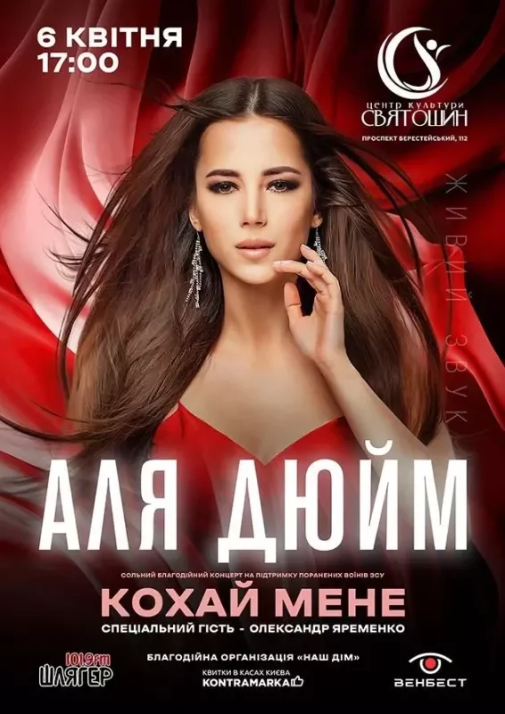 Аля Дюйм запрошує тебе на свій найочікуваніший концерт року! Сольний благодійний концерт «Кохай мене» на підтримку поранених воїнів ЗСУ!