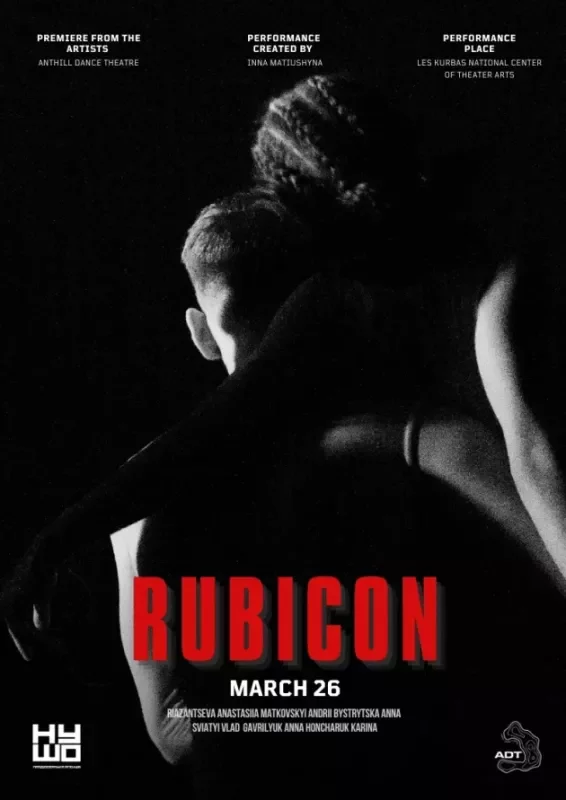 «Rubicon» — імерсивний хореографічний перформанс, який досліджує явище циклічності та дозволяє тобі відчути себе всередині історії, де ти робиш вибір. Чи може він уже зроблений за тебе?