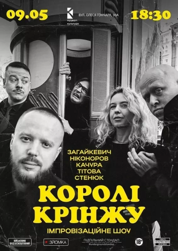 Імпровізаційне шоу «Королі Крінжу» – це унікальне комедійно-імпровізаційне дійство, де найкращі представники найскладнішого жанру у гуморі подарують вам грандіозні враження.