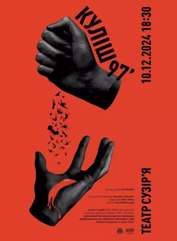 "97" сьогодні — це вистава про одну з трагічних спіралей української історії – великий голод 1921-1923 років: ще одну криваву сторінку московського/совєтського/російського терору. І про людей — протистояння за владу, боротьбу за ідею, бажання вижити. На що здатні люди в таких обставинах? Та чи сильно ми змінилися за 100 років, щоб вважати ці обставини вже далекими від нас?