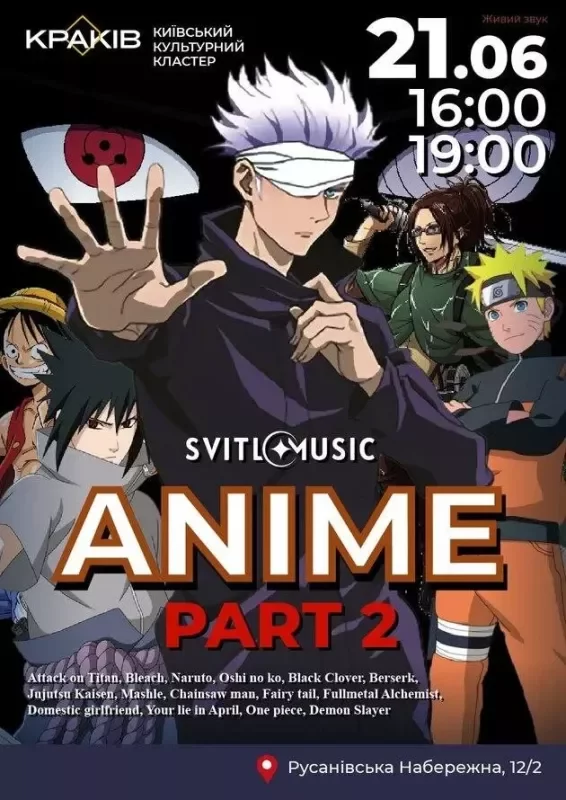 Пропонуємо вам насолодитися музикою улюблених аніме та завітати у різні цікаві світи. У програмі ви зможете згадати історії старих друзів або ж віднайти пригоди нових!