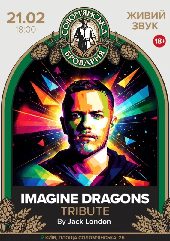 Броварні. “Believer”, “Radioactive”, “Demons”, “Thunder”, “Whatever It Takes” та інші хіти "Драконів" пролунають у фірмовому виконанні гурту Jack London.Відкриваємо двері о 17:00 — приходьте раніше, аби зануритися у всесвіт Imagine Dragons, де кожен ритм — заряд адреналіну, а кожен приспів — гімн сучасного покоління.