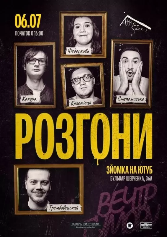 Важливо! Ми цінуємо атмосферу стендапу, тому просимо гостей поважати виступ коміків та комфорт інших глядачів. Гучні розмови, викрики або неналежна поведінка можуть стати підставою для відмови у перегляді шоу без повернення коштів за квитки.