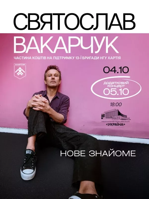Його ім’я відоме навіть тим, хто взагалі не цікавиться музикою. Святослав Вакарчук - справжня легенда. Його пісні - саундтрек нашої незалежності. Приходьте на особливий концерт, де Святослав Вакарчук виконає для вас хіти, на яких виросло не одне покоління. На вас чекає зустріч зі співаком та композитором, який знає все про українську душу.