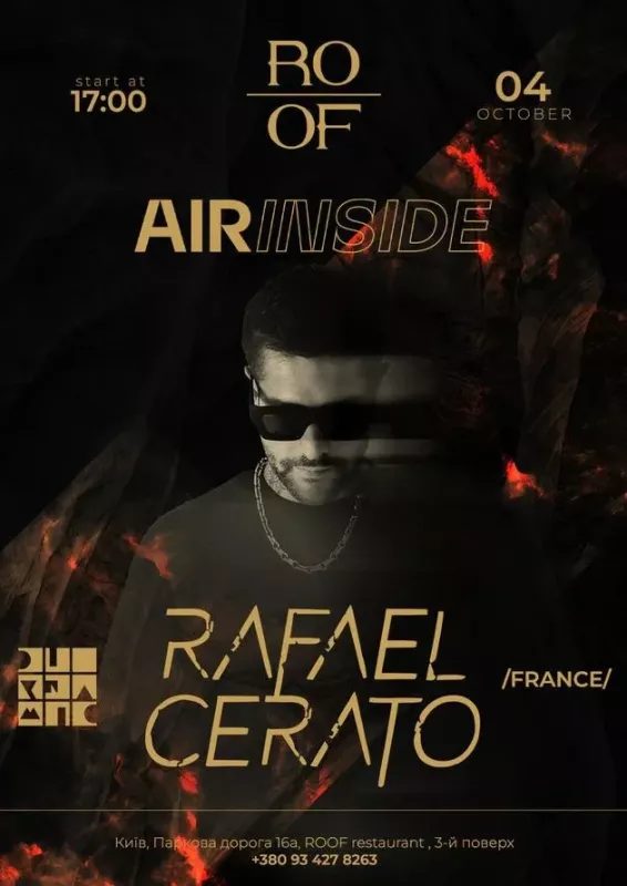 Хедлайнером стане Rafael cerato — французький діджей і продюсер, який випускає свої релізи на таких світових лейблах, як Diynamic, Stil vor Talent, Systematic, Einmusika, Suara. Його сетам властива особлива динаміка: від мелодійної глибини до вибухової енергії, що тримає у напрузі від першої до останньої хвилини.