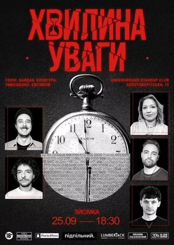 Ми запускаємо новий формат, натхненний всесвітньо відомим Kill Tony: кожен охочий може вийти на сцену, пожартувати одну хвилину та отримати фідбек від досвідчених коміків і комікес з «Підпільного». Це відкрита, підтримуюча платформа для тих, хто хоче вперше спробувати стендап.