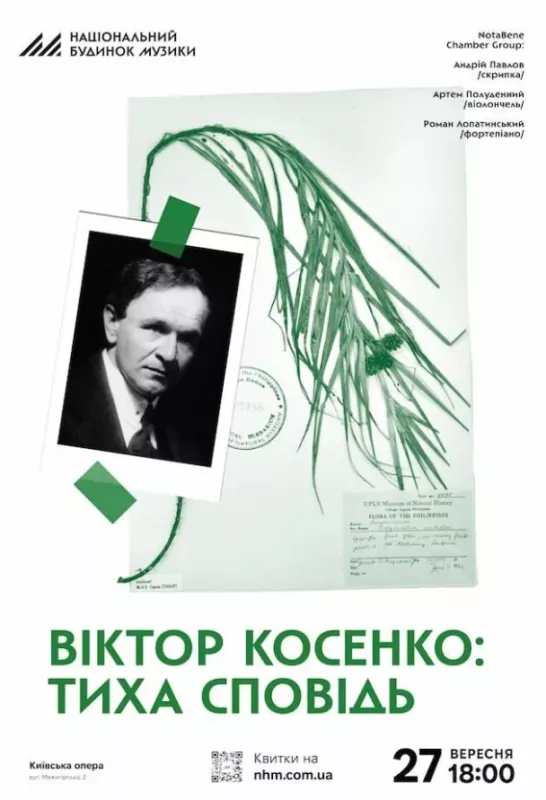 Віктор Косенко — один з тих композиторів, творчий шлях якого припав на часи активних соціальних, політичних та культурних змін. Отримавши освіту у Варшаві, а згодом в Петербурзі, Косенко відправився жити та працювати до Житомира: з одного боку — таким чином він воззʼєднався зі своєю родиною, з іншого — став активним діячем культурного розвитку міста. Він поєднував композиторську, викладацьку, виконавську та менеджерську діяльності, зокрема, організовуючи численні оркестрові та камерні концерти в місті. Так, на початку 1920-х Косенко разом із колегами Всеволодом Скороходом (скрипка) та Василем Коломойцевим (віолончель) створює тріо, яке за кілька років зіграло близько ста концертів, виконуючи значний масив світового репертуару для цього складу. Крім того цей колектив був першим виконавцем камерних творів самого Косенка. Зокрема, два твори, що звучатимуть у цій програмі NotaBene Chamber Group.