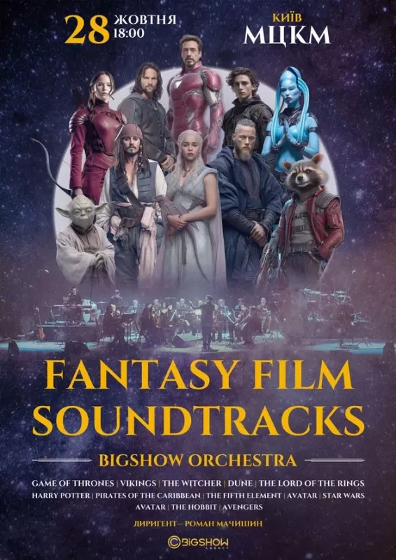 У цей вечір, ви станете частиною захопливої подорожі крізь час і простір, де магія переплітається з музикою, героїчні битви змінюються чарівними пригодами, а легенди оживають під звуки оркестру.