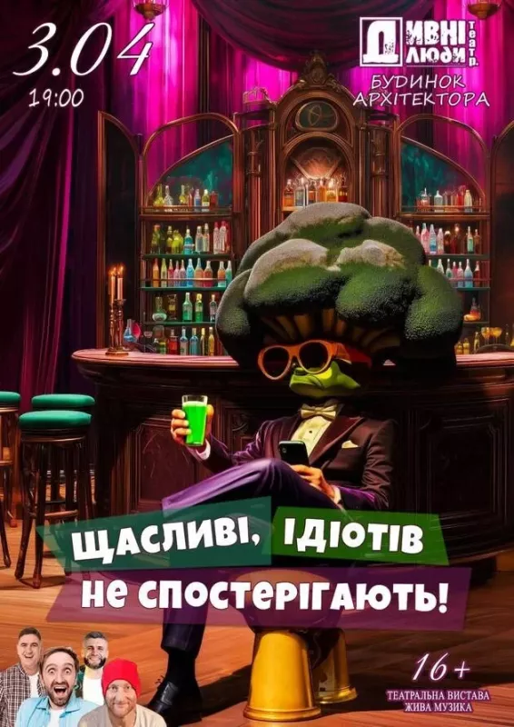 Актори театру «Дивні люди» знову збираються на одній сцені, щоб поговорити про найболючіше й найкумедніше — про людський ідіотизм, який, зізнаймося, часом буває в кожному з нас.????