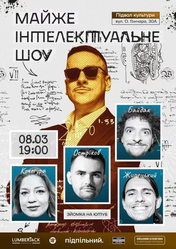 Шановні пані та панове, та всі хто вважає себе найелітарнішими глядачами! Запрошуємо вас на зйомку «Майже Інтелектуального Шоу».