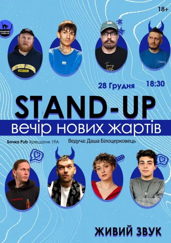 Цієї неділі даємо вам унікальну можливість насолодитися непередбачуваним і, місцями, вульгарним гумором від крутих київських коміків, у закладі, розташованому в самому центрі нашої неосяжної столиці. Формат вечора передбачає перебування виступаючого на сцені довше звичайного, що дозволяє не намагатися скоротити думку, а максимально розгорнути глядачеві свій матеріал.