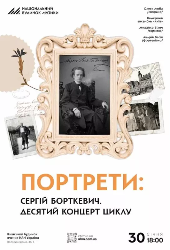 Камерний ансамбль «Київ» у своєму циклі монографічних програм «Портрети» звертає цього разу увагу до постаті Сергія Борткевича — уродженця Харкова, чия доля, сповнена випробувань еміграції, сформувала митця європейського масштабу. Борткевич — один із найпоетичніших голосів початку ХХ століття, його музика поєднує романтичну виразність із витонченим ліризмом. Він прожив більшу частину життя поза Батьківщиною — у Константинополі, Софії, Відні, — але у своїй музиці повертався і до України, зокрема, до спогадів про Харків і Крим.