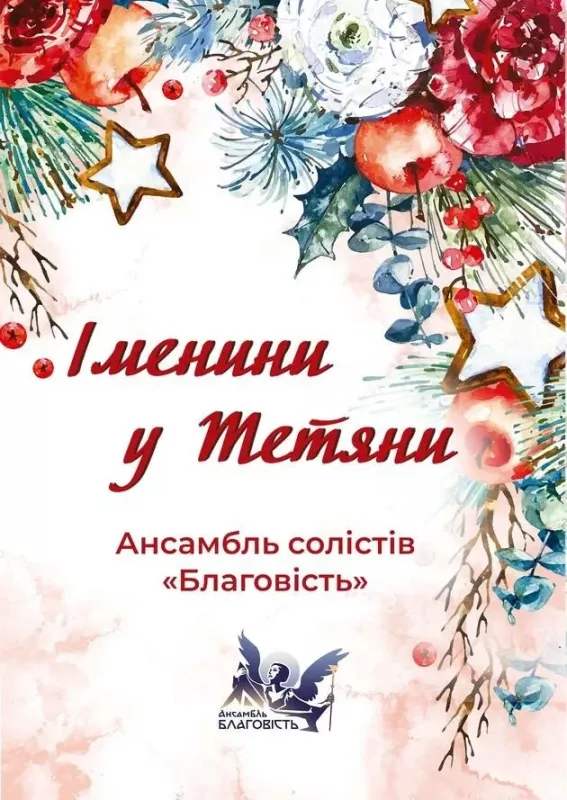 Запрошуємо Тетян з друзями, рідними, знайомими та всіх, хто любить музику разом отримати музичні подарунки на Тетянин День! Оновлена програма! Вишукана, тепла і затишна (Світло є!) атмосфера Білої вітальні, гарна музика у чудовому виконанні співаків Ансамблю солістів «Благовість», хоч на годину, дозволять відпочити від суворої буденності та нададуть душевного релаксу. Чим у темряві сидіти - краще на концерт сходити! Гарний настрій гарантовано !