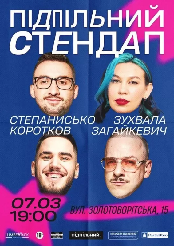 Underground Standup Club – легендарне місце прекрасного закладу Porta D`oro Trattoria де коміки «Підпільного Стендапу» виступають регулярно.