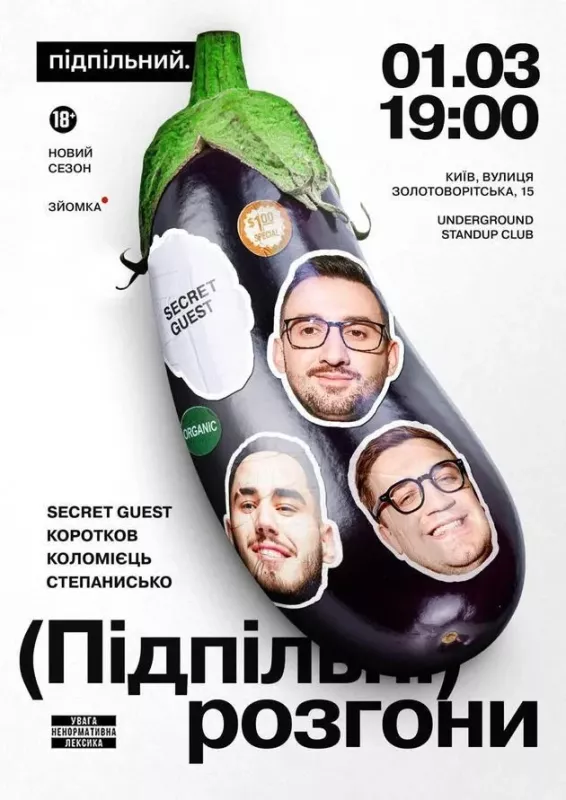Важливо! Ми цінуємо атмосферу стендапу, тому просимо гостей поважати виступ коміків та комфорт інших глядачів. Гучні розмови, викрики або неналежна поведінка можуть стати підставою для відмови у перегляді шоу без повернення коштів за квитки.