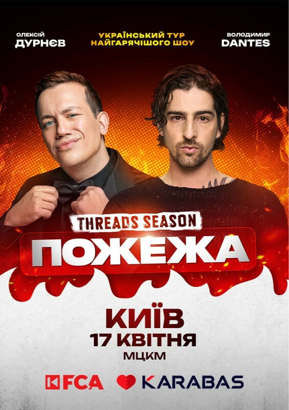 Олексій Дурнєв та Володимир Дантес вперше в історії вийдуть на сцену, щоб відповісти на всі хвилюючі вас запитання. Найгарячіше ютюб-шоу «Пожежа» тепер у твоєму місті. На кожному івенті на тебе чекатиме топ шоу, та ніяких заготовлених текстів -
