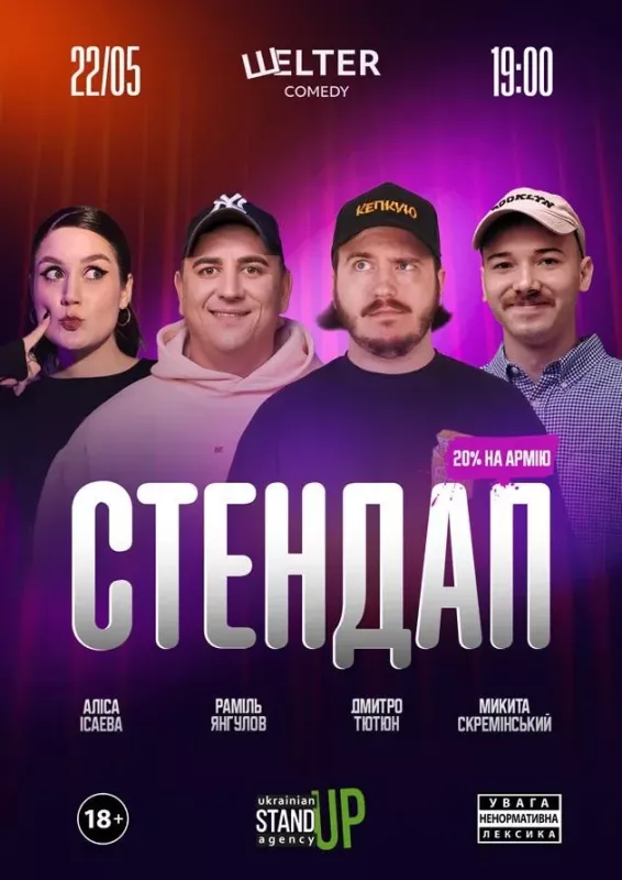 Важливо! Поважайте роботу коміка та комфорт інших глядачів. Заважати виступу (вигукувати, голосно розмовляти або поводитися зухвало) заборонено. Організатор залишає за собою право відмовити у перегляді шоу без відшкодування коштів за квитки. Давайте створювати атмосферу разом!