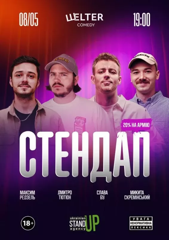 Важливо!Поважайте роботу коміка та комфорт інших глядачів. Заважати виступу (вигукувати, голосно розмовляти або поводитися зухвало) заборонено. Організатор залишає за собою право відмовити у перегляді шоу без відшкодування коштів за квитки. Давайте створювати атмосферу разом!