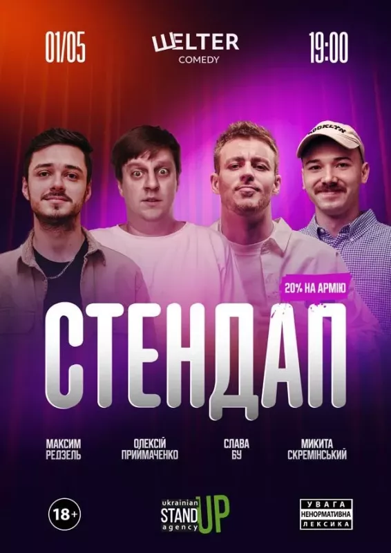 Важливо!Поважайте роботу коміка та комфорт інших глядачів. Заважати виступу (вигукувати, голосно розмовляти або поводитися зухвало) заборонено. Організатор залишає за собою право відмовити у перегляді шоу без відшкодування коштів за квитки. Давайте створювати атмосферу разом!