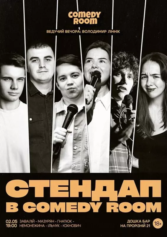 Твій вечір буде наповнений жартами, сміхом та новими знайомствами, якщо завітаєш цього вечора у Comedy Room! Ми обіцяємо тобі доступний бар, та класний стендап, чекаємо на тебе!
