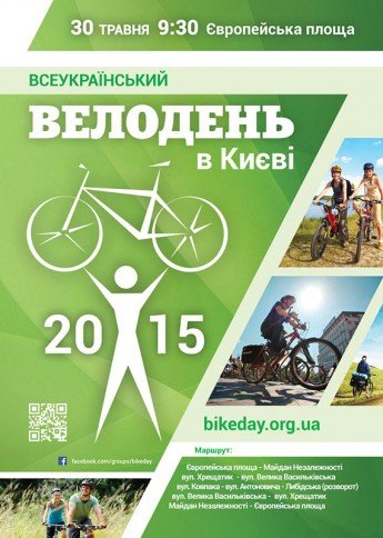 Всеукраїнський Велодень відбудеться 30 травня в Києві. Столичні велосипедисти організованими колонами з 10 районів міста приїдуть на Європейську площу. О 10:00 буде зроблено групове фото з рекордною кількістю учасників.