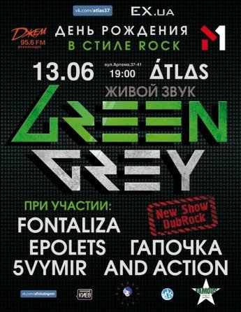 Green Grey - украинские музыканты, которые сломали сознание общественности и уже в 90-х стали классическими рок-звездами. Они показали, что можно и нужно радикально отличаться от других – круто играть, одеваться, задавать тон и стиль, диктовать правила и музыкальные вкусы. Потому были татуировки и граффити Green Grey, Новая Молодёжь Новой Европы, армия преданных фанов, мешки писем - однажды насчитали 50 000 штук... Сегодня на концертах группы можно увидеть 3-4 поколения. Фанам Green Grey – от 14 до 60.. Они взрослеют, воспитывают детей, и приходят на концерты с ними.