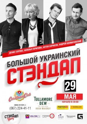 Друзья, как вы знаете, стэндап шоу — это результат труда коллектива настолько талантливых комиков, что концентрацию и градус шуток им даже приходится иногда контролировать, дабы оставить хоть немного места для жёстких импровизаций на месте выступления. И по итогу, плотность и насыщенность юмора Большого Украинского Стэндапа зашкаливает настолько, что для успешного приведения зрителей обратно в себя, шоу благоразумно проводится лишь раз в месяц. Конечно, стэндап можно смотреть по телевизору. Но только представьте себе, что же именно каждый раз-в-месяц творится вживую непосредственно в зале! 29 мая Большой Украинский Стэндап будет поистине сенсационным.
