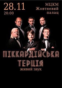28 листопада вокальна формація «Піккардійська Терція» дасть у Києві сольний концерт. Місце зустрічі меломанів із легендарним акапельним колективом - Жовтневий палац. Початок концерту – о 19:00.