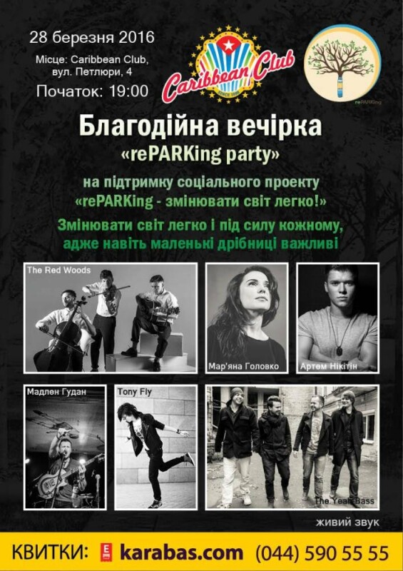 28 березня о 19.00, в Caribbean Club (вул. Петлюры, 4) відбудеться благодійна вечірка в стилі джазу та блюзу «ReParking party», за участі провідних українських джазових, блюз-рок, поп співаків та музикантів, яка несе в собі благородну мету – збір коштів на облаштування парку на території Інституту педіатрії, акушерства та гінекології НАМН України.