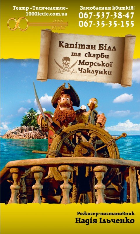 Билеты: http://1000letie.com.ua/index.php/teatr/afisha/304-kapitan-bill-i-sokrovishcha-morskoj-volshebnitsy