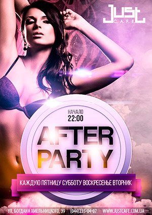Тренды меняются, а классика бессмертна! Вечеринки Afterparty – это не просто очередной способ провести вечер, а культовое событие, где собирается самая светская публика Киева. Наша визитная карточка – неугасающее ни на секунду веселье, потому что когда другие рестораны и клубы уже закрываются, у нас ночные приключения только начинаются.