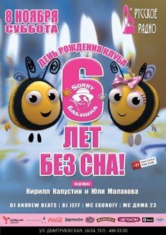 Ну с пятницей все более-менее понятно: ДР, отрыв, звезды.... Вы думаете в субботу мы дадим Вам отдохнуть???)))) Неа!!!))) Тем более, что именно в субботу клуб "Sorry, Бабушка" придут поздравлять: наше любимое Русское Радио Украина и флагман украинского шоу-бизнесса - группа "Авиатор"!!!