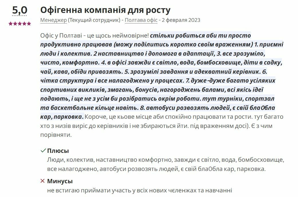 Аврора дійсно може похвалитися позитивними відгуками на свою роботу. Водночас компанія намагається й надалі розвиватися в напрямку покращення умов роботи та підвищення якості сервісу.