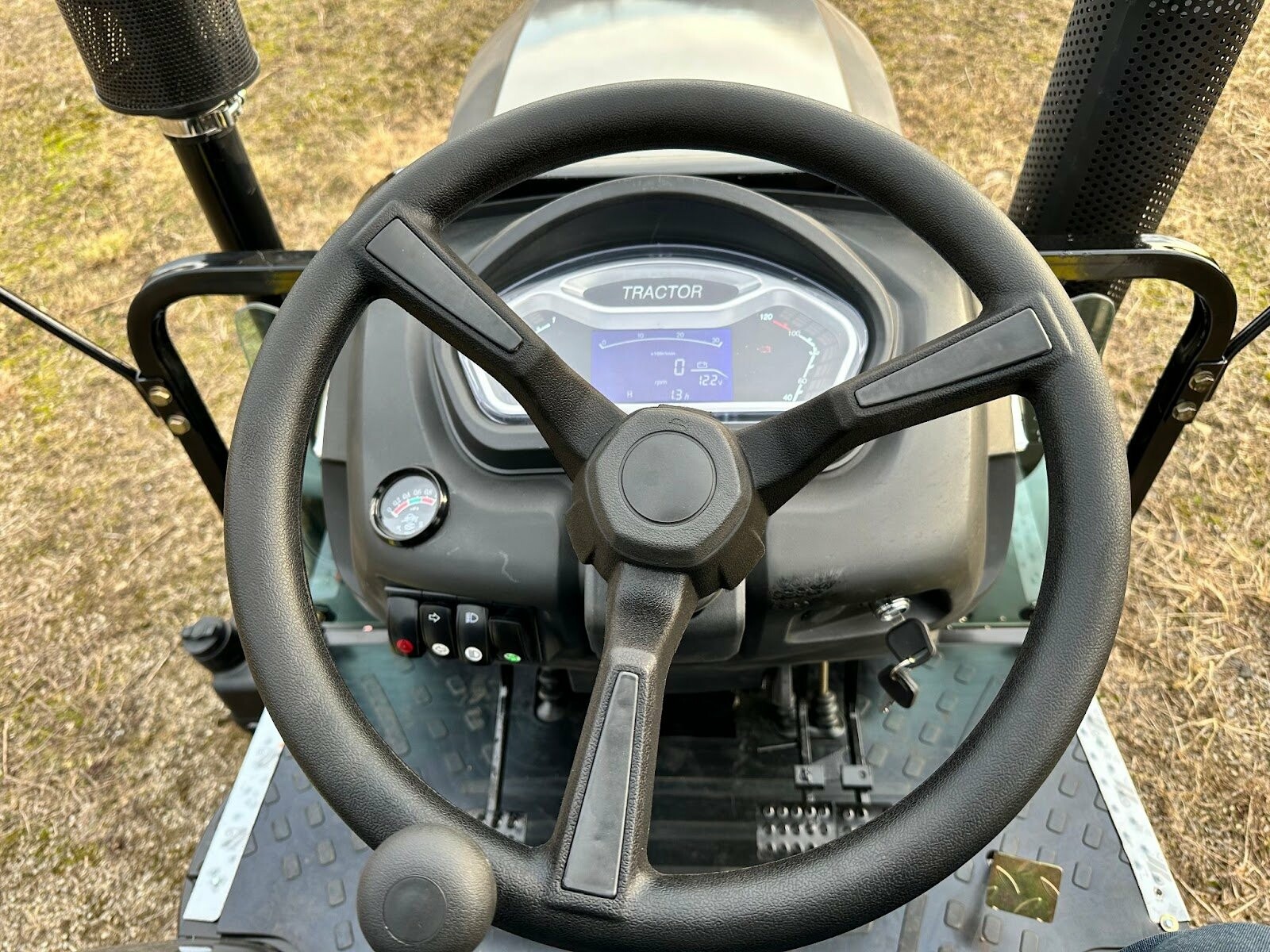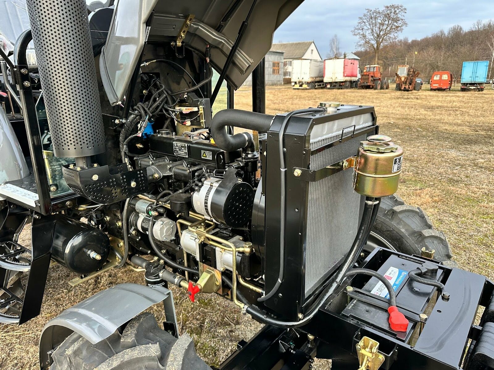 Мощный двигатель приводит в движение трансмиссию, которая передает тяговое усилие агрегата на колеса и вал отбора мощности. Навесное оборудование и вспомогательные устройства подключаются через ВОМ или трехточечную навеску, позволяя выполнять задачи, такие как вспашка, кошение, уборка снега или транспортировка. Полный привод и блокировка дифференциала обеспечивают устойчивость на неровной местности, а гидроусилитель руля упрощает маневрирование.
