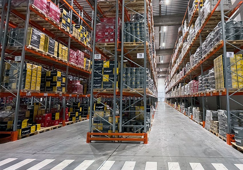 - Модуль A — 5 700 м², висота 12 м, 11 044 палетних місць. Стелажне та підлогове зберігання.