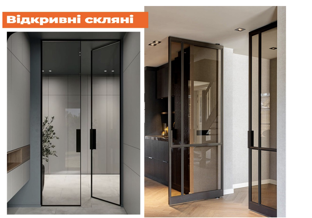 Такі конструкції чудово вписуються в інтер'єри у стилі loft, мінімалізм, скандинавський чи хай-тек. Можна обрати прозоре, матове, тоноване або навіть декороване скло з малюнком.