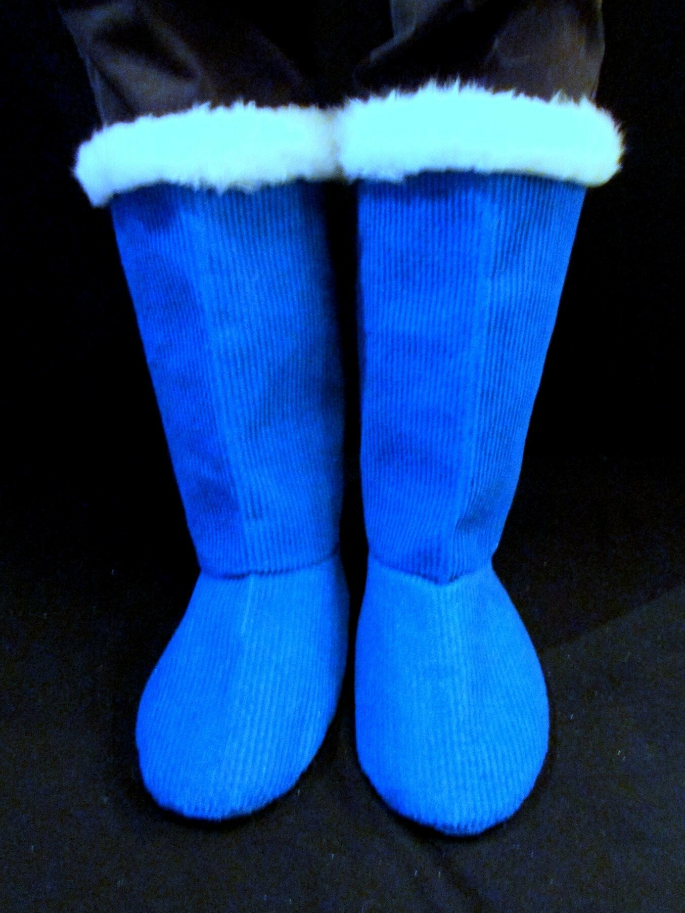 - Сині чоботи — менш традиційний, але цілком доречний варіант для костюма Святого Миколая, особливо якщо образ має національний або авторський характер. Синій колір асоціюється зі спокоєм, мудрістю, благородством і небом, що добре перегукується з образом святого, який несе добро, мир і турботу.