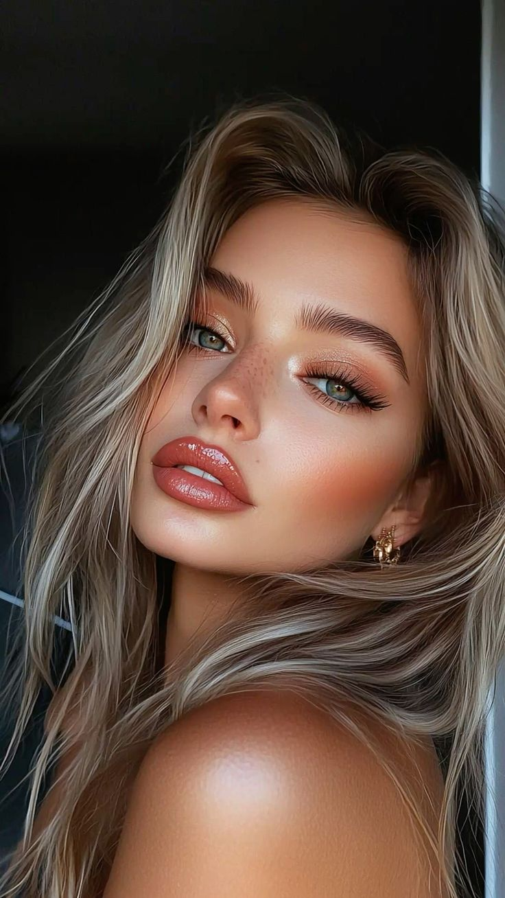 - Спробуйте помади з фрост-фінішем, або нанесіть хайлайтер в центр губ для легкого блискучого акценту.