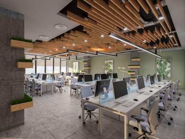 Також можна використати кілька концептуальних декорацій або елементів сучасного мистецтва, однак варто вибирати рішення без неприродних кольорів та гострих кутів. Наприклад, вдалим варіантом для дизайну офісу стане кілька чорно-білих фото на стінах або окремий стелаж з книгами рідких видань десь в кутку приміщення.