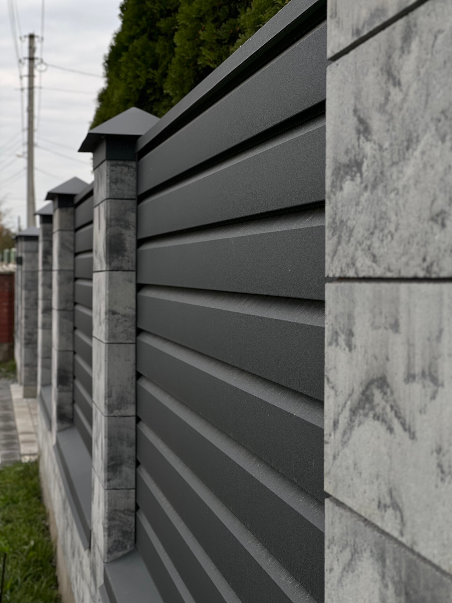 Такі паркани мають захисний цинковий шар та полімерне покриття, тому не бояться вологи, снігу чи різких перепадів температур. Головне — надійна фіксація на саморізи або заклепки, що взимку робиться так само легко, як і влітку.
