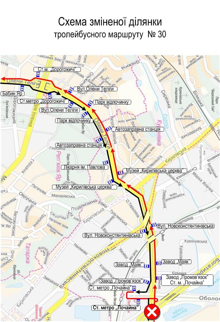 Маршрут № 30 от ул. Кадетский Гай ст. м. "Почайна".