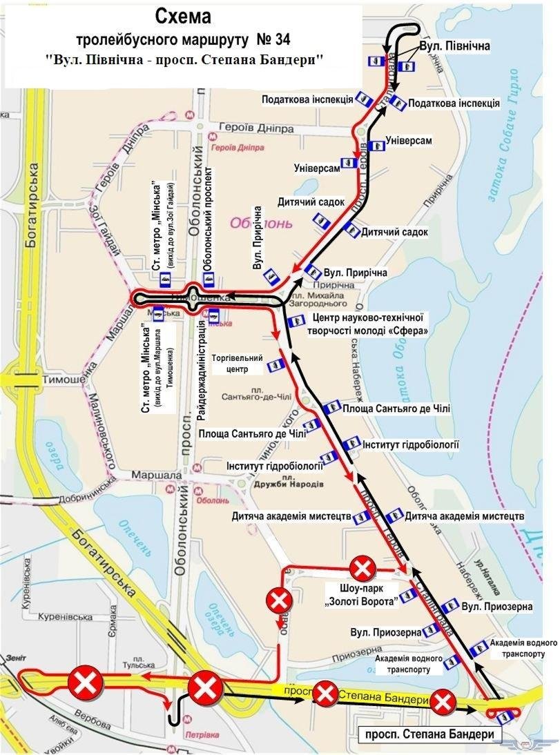 В связи с этим, "Киевпастранс" разработал временны маршруты для троллейбусов №№ 29, 30, 30К, 31, 34.