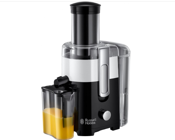 - Устройство имеет две скорости и экстра-широкий погружной желоб (75 мм), в который можно поместить целый фрукт, без предварительной нарезки.